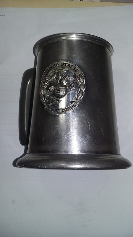 On the opposite side it has a Marine Corps logo attached. If you believe this cup is yours please contact; veteransreporternews@gmail.com with the subject, “Lost Tankard”. We will then confirm your identity.