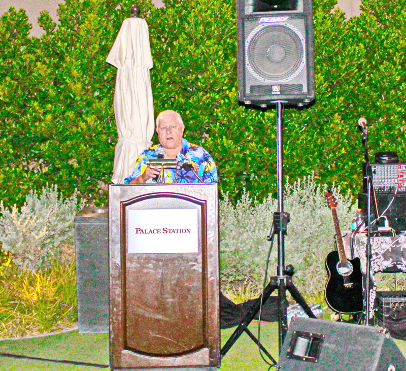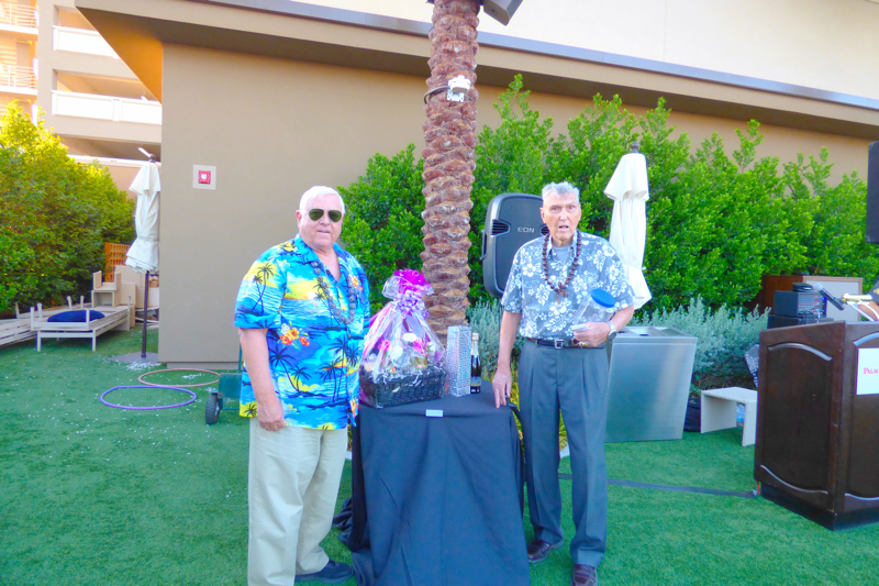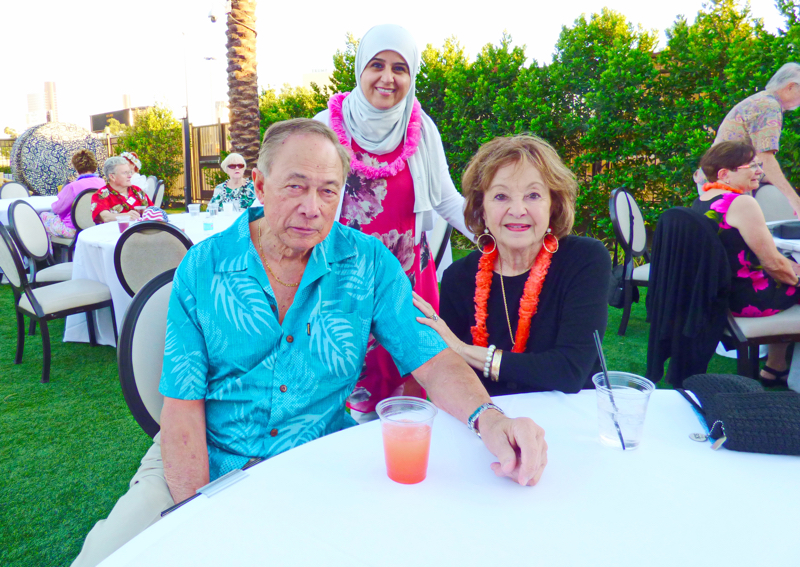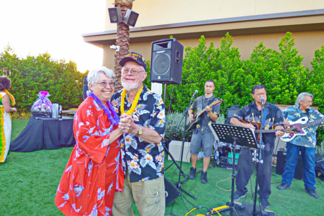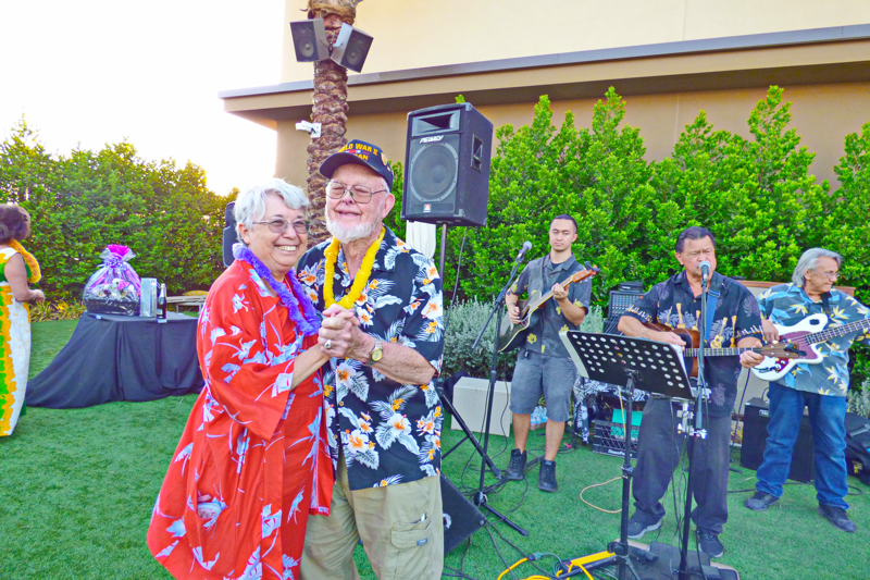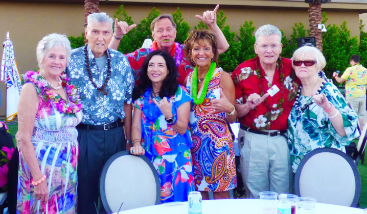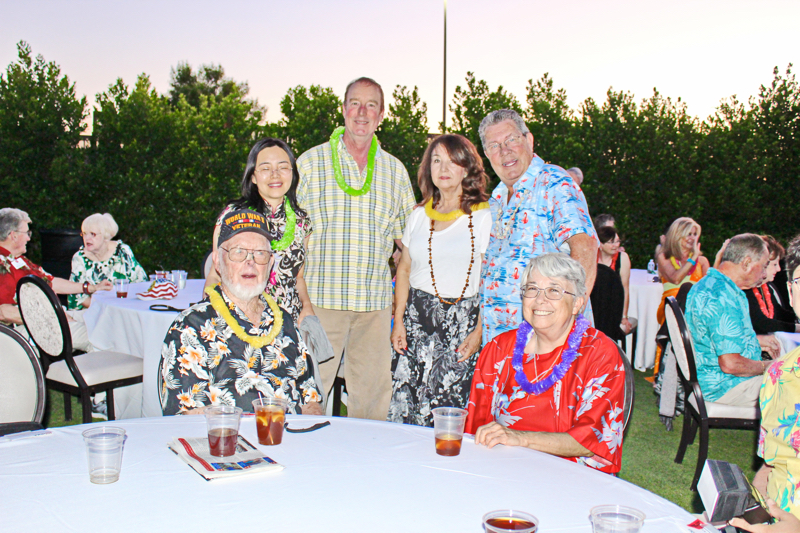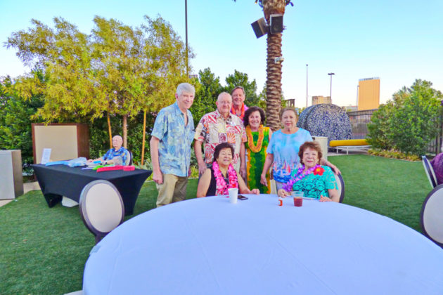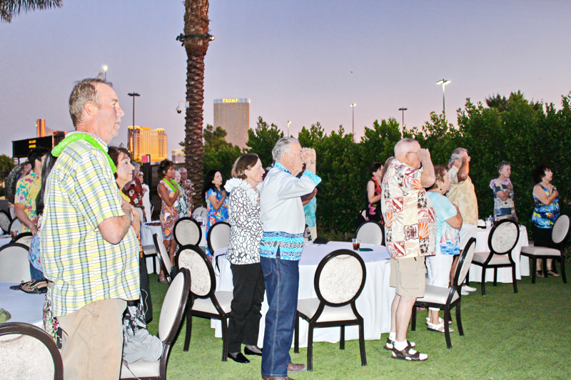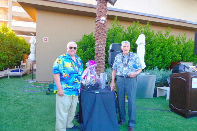 On September 19th evening the Southern Nevada Chapter of Military Officers Association of America (SNMOAA) Chapter has their Hawaiian luau dinner party. Every year SNMOAA members and guests dress in Hawaiian clothes and enjoy food and music at Palace Station Hotel poolside. SNMOAA also celebrated honorary member’s World War II veteran Ken Hill’s 95th birthday. All the family members from Ken’s family came to celebrate along with the members. President of SNMOAA Swannie Swenson says, “This is MOAA’s once a year event and it’s so special we’re celebrating a 95-year-old WWII veteran’s birthday and also a pioneer founding member in education for college of southern Nevada. He spent his whole life in education to build Nevada’s present education system”