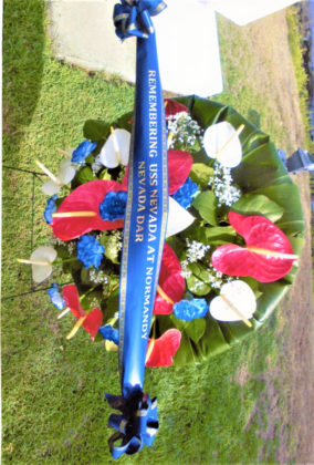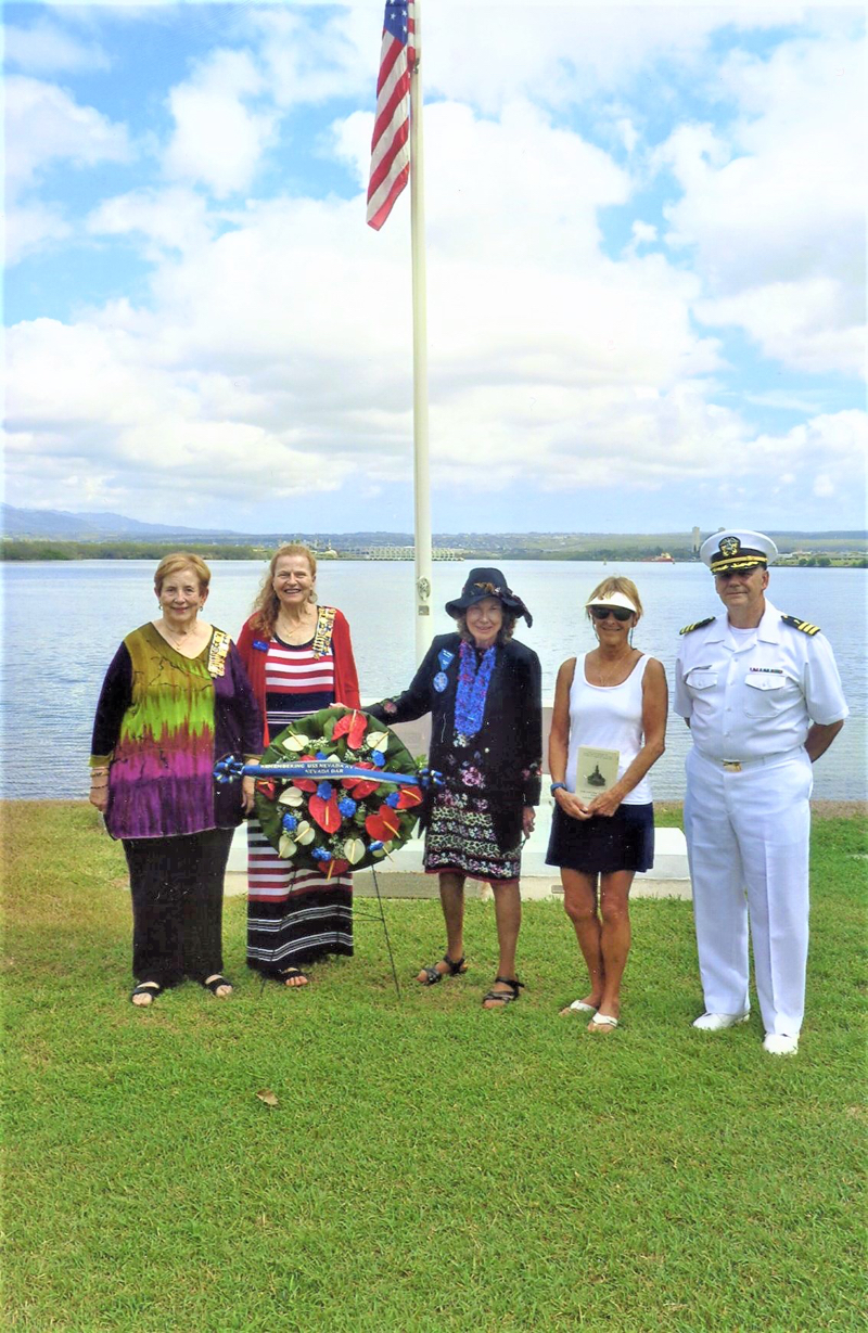 Dr. Linda Miller, NSDAR Old Spanish Trail Chapter Commemorative Events Chair, coordinated a 75th Anniversary of DDAY to honor the USS Nevada Veterans who fought at Normandy at Hospital Point Pearl Harbor Hawaii near the site where the USS Nevada was beached in 1941. Hawaii DAR also helped her as they did in December 2016 when Dr. Miller coordinator at 75th Anniversary of Pearl Harbor Tribute trip for 3 USS Nevada Veterans and one US Amy Colonel who fought in the Pacific during WWII. Les Putman, one of the USS Nevada veterans who fought at Normandy and was recently deceased was honored as well as Lee Koury who recently died and who helped design the 2016 polo shirt for the trip and helped Dr. Miler coordinate that trip. Three USS Nevada Veterans who fought at Normandy and are still alive were also honored. Those were Dick Ramsey, Charles Sehe and Cliff Burks. The Navy under the direction of David Hodge, Community Relations Manager Joint Base Pearl Harbor Hickham, coordinated the event with Dr. Miller and provided a chaplain, bugler and boat ride down battleship row after the event.